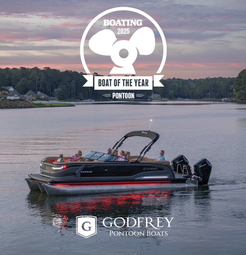 Elkhart, Ind. – Godfrey Marine, manufacturer of premium Godfrey pontoon boats and Hurricane deck boats, and legendary innovator in versatile pontoon boat designs, announced today that its 2026 Godfrey Sanpan has been named Boat of the Year in the Pontoon Category by Boating Magazine. Every year the editorial team tests more than 100 new boats and selects those