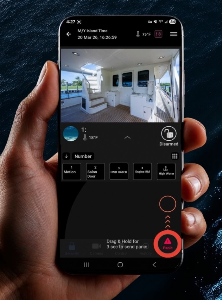 The system uses both wireless and hardwired sensors, supported by an innovative digital architecture. With GOST’s wide array of sensors, the system is fully customizable to meet any vessel’s layout and any customer’s priority. Additionally, the app provides push notifications and lets users send panic notices from their smartphones while ashore to arm the boat’s Argus system.